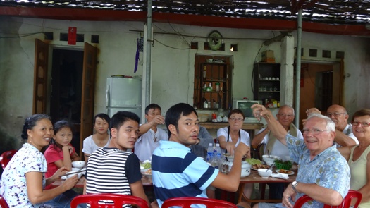 Participation à la confection de crêpes sous le regard de la maitresse de maison ; Certain on manqué la poêle en les faisant sauter mais le repas fut savoureux. Nous avons apprécié les plats traditionnels et la fameuse spécialité qu’est le « Tam Huu »