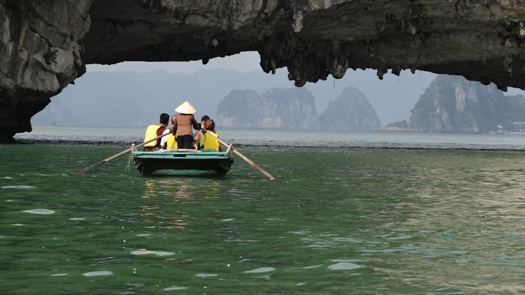 Aux aurores nous prenons une petite barque à 2 places pour visiter et nous rendre compte de la vie de ces pêcheurs qui vivent dans les villages flottants et abrité par ces pains de sucre. Une existence qui nous semble pour nous impossible.