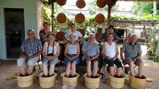Chacun les pieds dans un joli petit saut en bois, nous avons eu le privilège d’un massage de pieds aux herbes aromatiques effectué par les mains douces de jolies dames. Ce massage n’était pas sensuel comme à Hanoi mais quand même bien voluptueux.