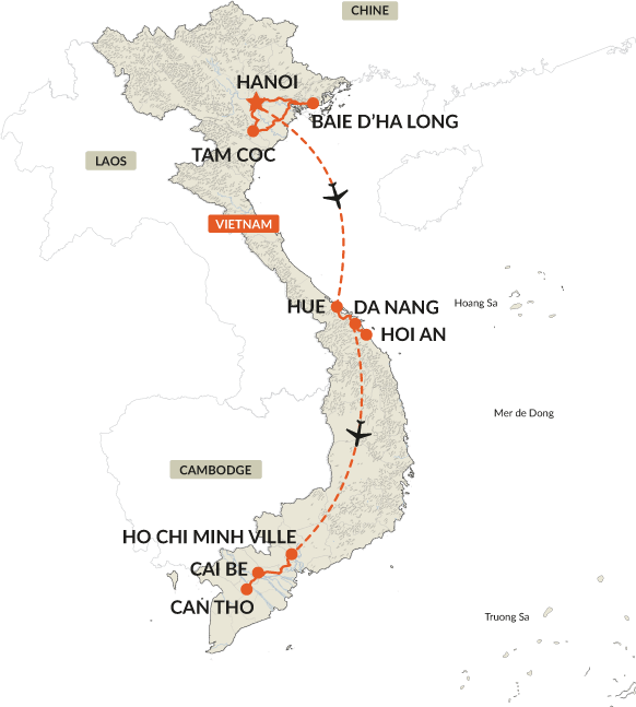 Retour à l’hébergement avec, si le temps le permet, un arrêt au marché de Dong Ba où se vendent les plus beaux chapeaux coniques du Vietnam.